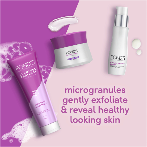 Pond’s Flawless Radiance Even Tone Facial Foam contains micro-exfoliating beads to wash away oil, dirt and impurities, leaving skin brighter and feeling more radiant. It is gentle enough for everyday use.